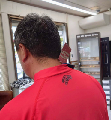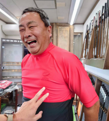 営業部長であるS様の後押しもありましたが、養老CC選手会のユニフォームがちょうど本日入荷したので、早速チーム養老CCのS様に着ていただきました