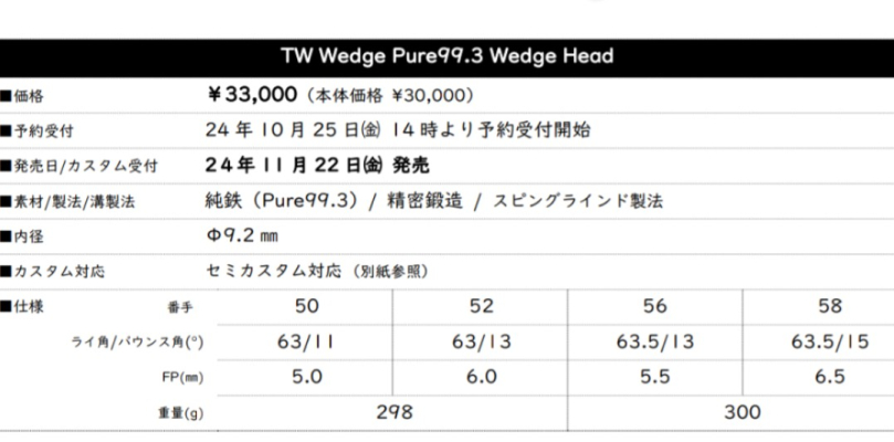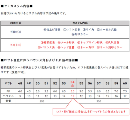 TWウェッジはセミカスタム対応モデルとなりますが、制限がありますのでご確認下さいませ